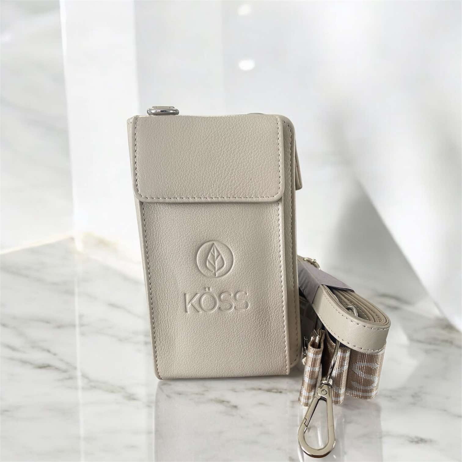 Bandoulière ajustable : Livré avec une sangle en cuir et une bandoulière KÖSS au choix pour personnaliser votre style.
